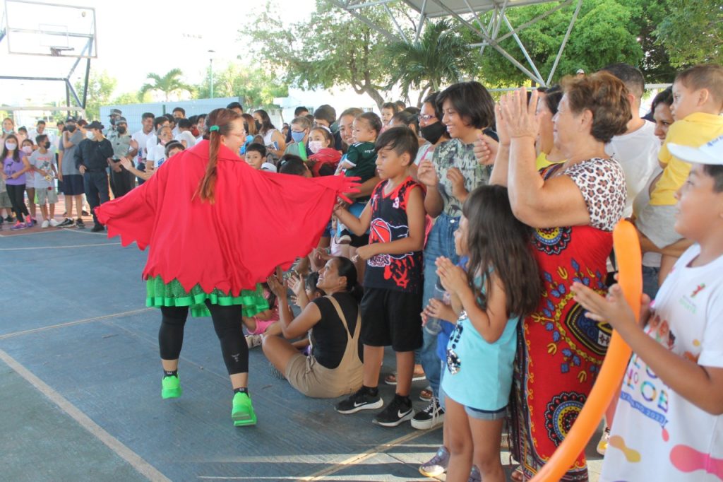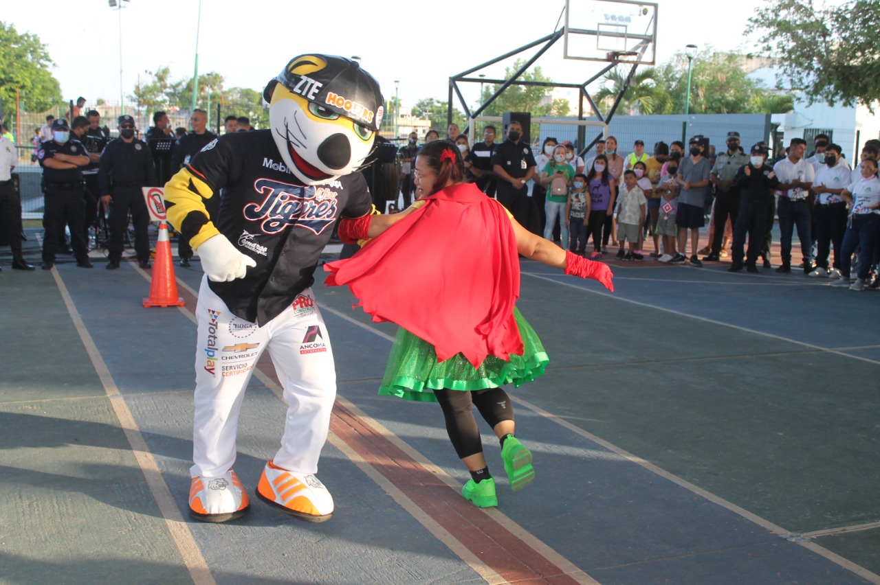 Los más pequeños se divirtieron con el show de «Semaforina» la heroína de los semáforos, además de la participación especial del tigre «Chacho» de los Tigres de Quintana Roo.