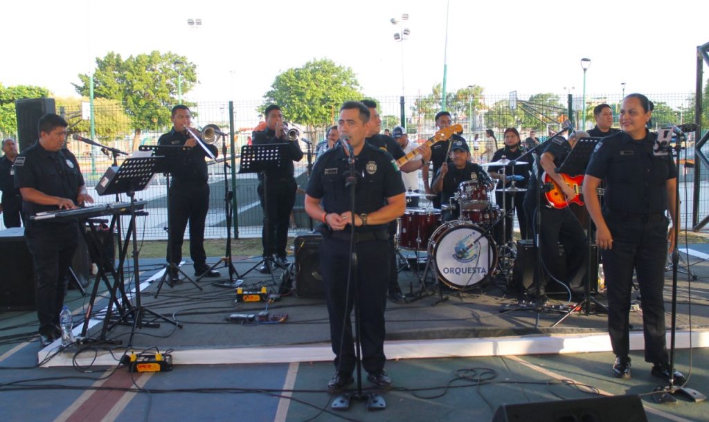 El evento estuvo amenizado por la música de la Orquesta de la Policía Quintana Roo, mientras que los vecinos disfrutaban los servicios, actividades y juegos presentados por las direcciones como el Instituto del Deporte, Asociaciones Civiles y todas las Direcciones de la Secretaría Municipal de Seguridad Pública y Tránsito.