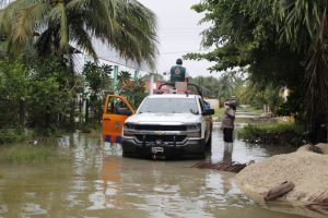 En el caso de la colonia Kilómetro 55 de Mahahual hay encharcamientos y algunas inundaciones, pero solo resta esperar que baje el nivel del agua, al estar en una zona baja y no haber alguna zona donde desazolvar, pues el área está dentro de un humedal.