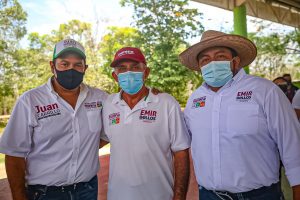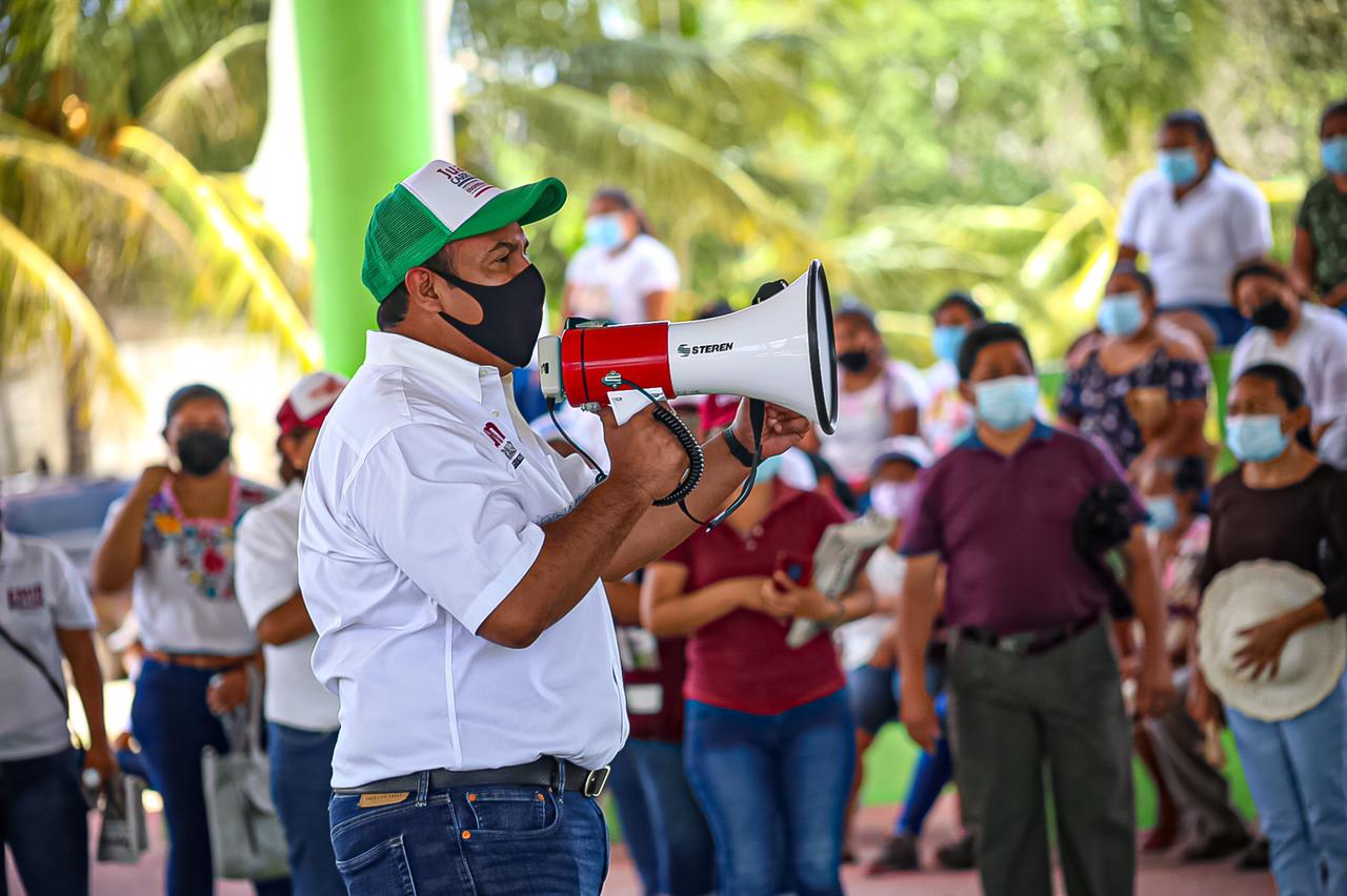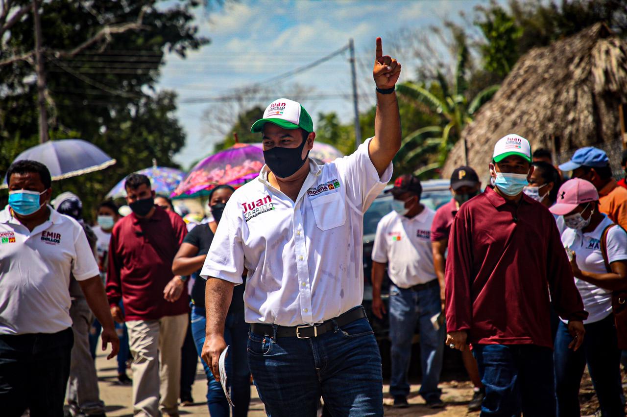 Juan Carrillo y Orlando Emir Bellos Tun, candidato a presidente municipal de Lázaro Cárdenas de la coalición Juntos Hacemos Historia conformada por los partidos Movimiento Regeneración Nacional (Morena), Partido Verde Ecologista de México (PVEM) y Partido del Trabajo (PT), recorrieron este viernes Kantunilkin y la comunidad de San Ángel.