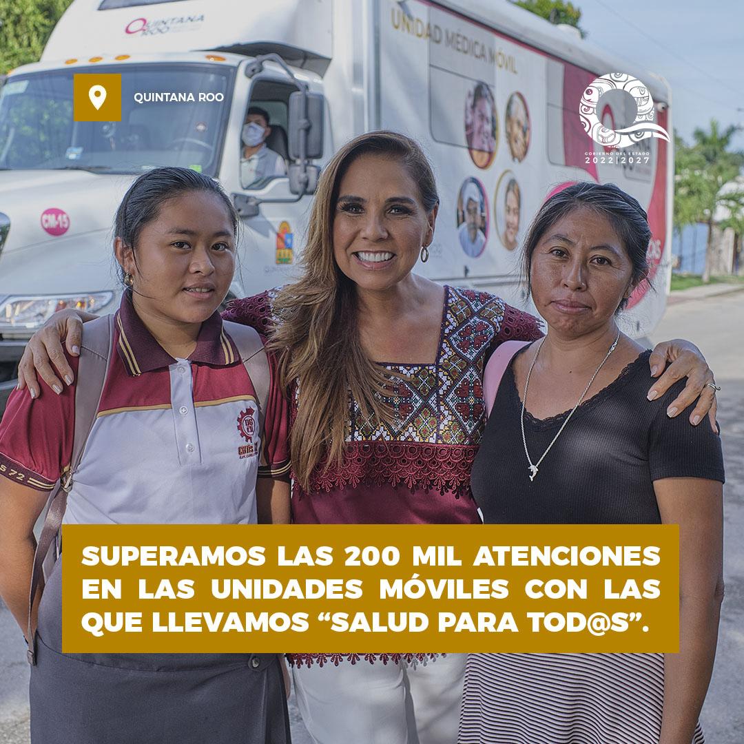 En las unidades móviles “Salud para Tod@s” se ofrece a la población de manera directa y resolutiva métodos de diagnóstico para la detección y atención oportuna gratuita de diversas enfermedades, por lo que Mara Lezama invitó a todas las localidades aledañas a acercarse y aprovechar los servicios médicos gratuitos. Entre ellos consultas, radiografías, limpieza dental, análisis clínicos y mucho más.