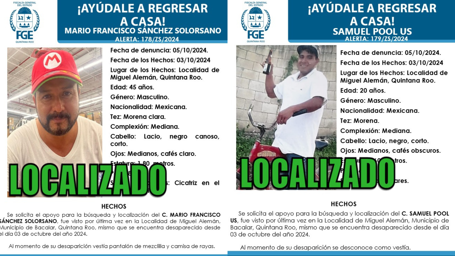 PODER Y CRÍTICA | REDACCIÓN | La Fiscalía General del Estado (FGE) de Quintana Roo informó que, tras un operativo de búsqueda en las comunidades de «El Gallito» y Melchor Ocampo, se logró el rescate de dos de las cuatro personas que están desaparecidas desde el 3 de octubre.
