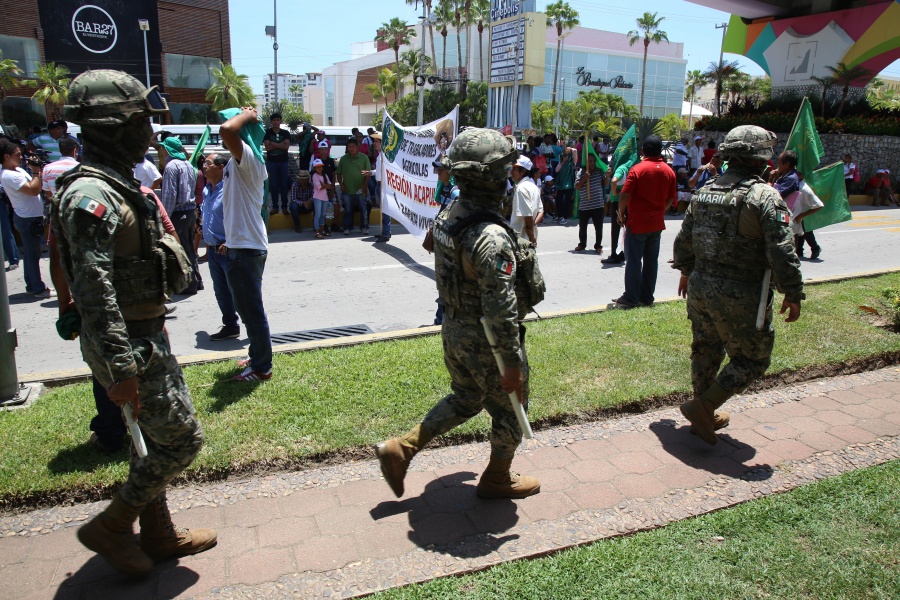 Se observó a algunos militares y guardias nacionales con cubrebocas y aplicando gel antibacterial a los asistentes.
