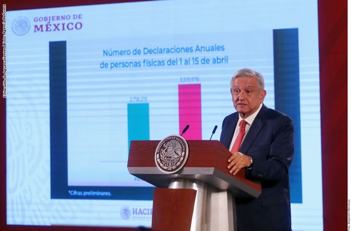 México, 18 abril; poderycritica.-El Presidente Andrés Manuel López Obrador presumió que a pesar de la crisis generada por el COVID-19, aumentó en 29.5% el número de declaraciones anuales de fiscales de personas físicas ante el Sistema de Administración Tributaria (SAT).