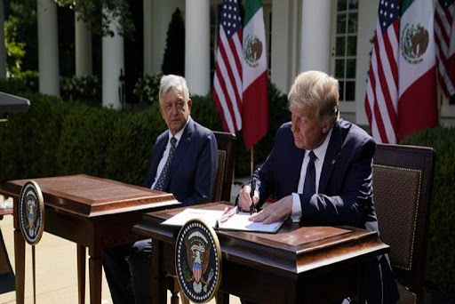 EU, 28 agosto; poderycritica.-Durante uno de los videos que se presentaron este jueves en la Convención Nacional Republicana, para mostrar los logros del Presidente de Estados Unidos, Donald Trump, se mostró una imagen de su homólogo mexicano, Andrés Manuel López Obrador, al momento en que se habló sobre la firma del T-MEC.