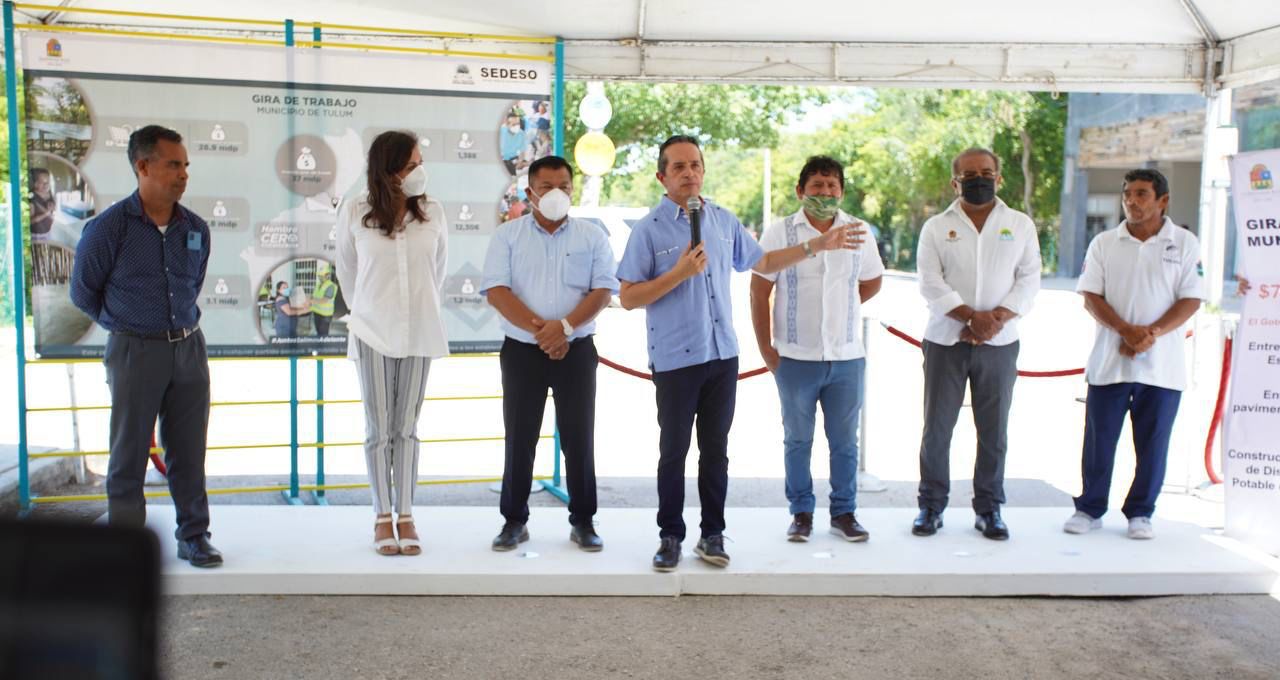 Acompañado por Jaime Mollinedo Gómez, director general de la Comisión de Agua Potable y Alcantarillado (CAPA), el gobernador inauguró en Tulum la construcción de la Fase II de la Red de Distribución de Agua Potable del Sector «La Veleta», obra que beneficia a 5 mil 536 habitantes.