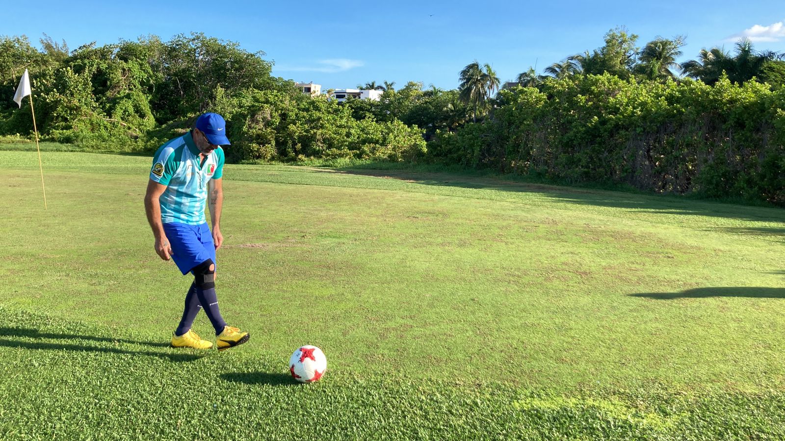 Cancún, Q. Roo, Lunes 27 de Septiembre de 2021, poderycrítica.- Erick “Pantera” Sánchez se consolidando como un referente del FootGolf de Cancún y la mañana de este domingo no fue la excepción, con un certero ritmo de juego cerró la 3r Fecha de la Copa de FootGolf Quintana Roo entregando tarjeta de -9 en un trazado alterno en el recorrido de la laguna del Club de Golf Pok Ta Pok, que en esta ocasión fue par 69.