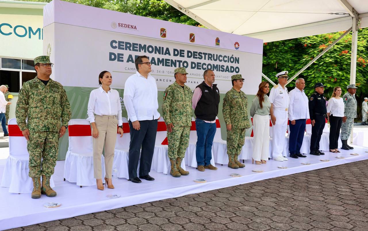 Finalmente, informó que las armas que se destruyeron fueron aseguradas gracias al trabajo coordinado del Ejército Mexicano, Armada de México, Guardia Nacional, Secretaría de Seguridad Ciudadana del Estado de Quintana Roo; así como de los policías municipales, y la participación de las fiscalías generales del estado y de la República.