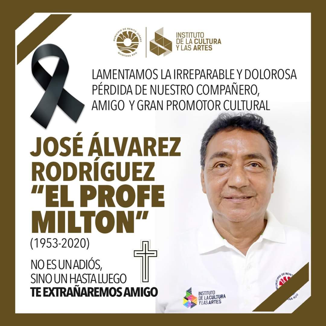 Cancún, junio 27.- José Álvarez Rodríguez, mejor conocido como «El Profe Milton», falleció esta tarde en Cancún.
