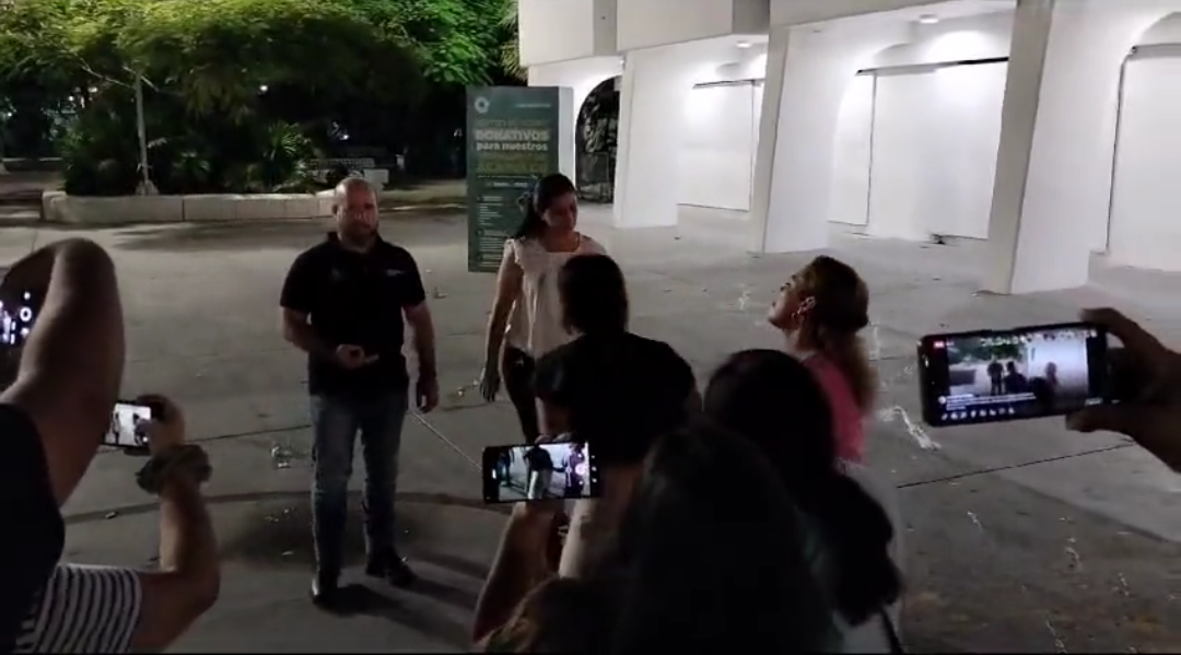 A grito de “¡Vivos se los llevaron, vivos los queremos!” y “Les faltan huevos para hacer justicia!”, el comité de “Madres Buscadoras de Quintana Roo” recibió esta noche de sábado, en la plaza de la Reforma del Ayuntamiento Benito Juárez, al titular de la Mesa de Seguridad del Gobierno del Estado, José de la Peña.