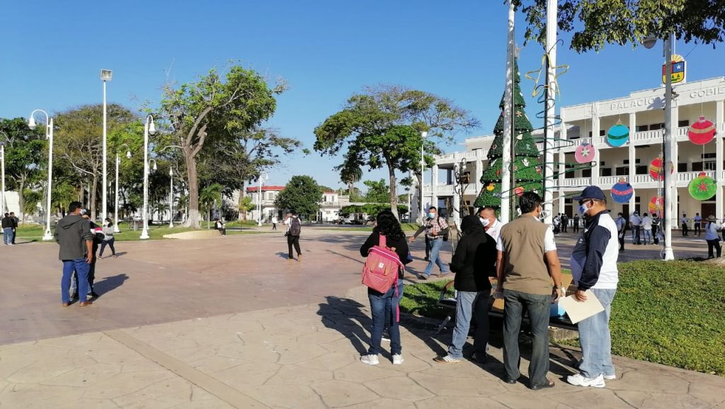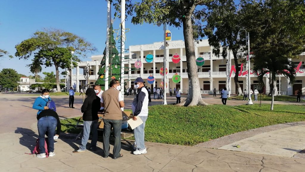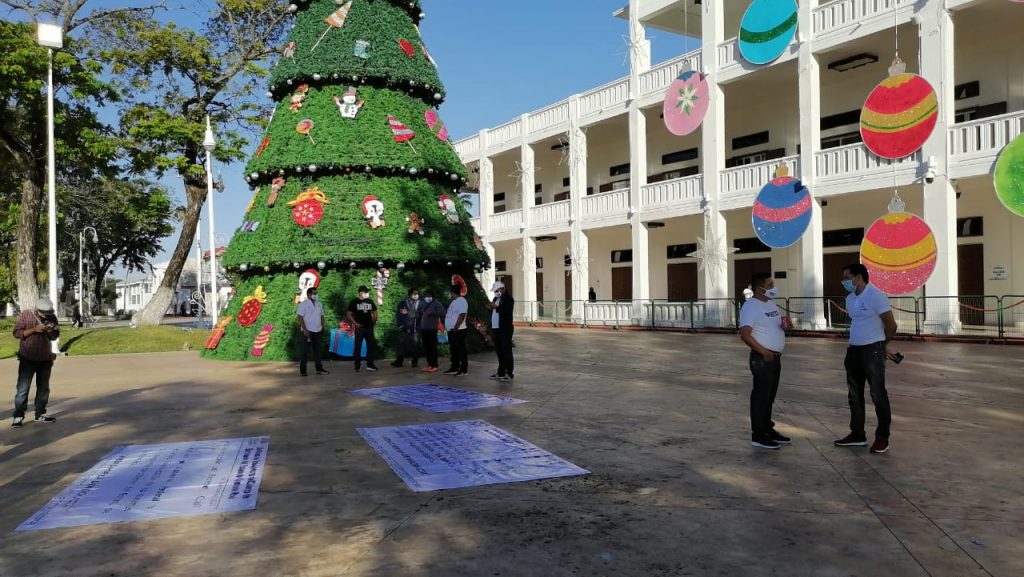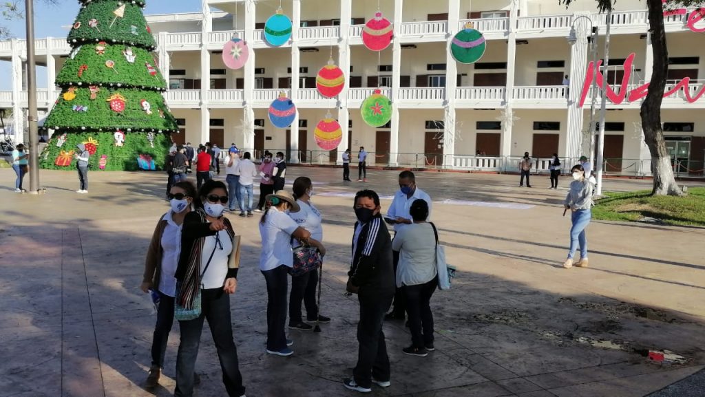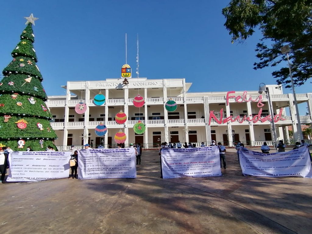 Chetumal, Q. Roo, martes 08 de Diciembre de 2020, poderycrítica.- Representantes del Sindicato de Trabajadores del Colegio Bachilleres de Quintana Roo se presentaron a las afueras del Palacio de Gobierno para que se cumplan sus prestaciones de ley; desde ayer lunes suspendieron clases virtuales.