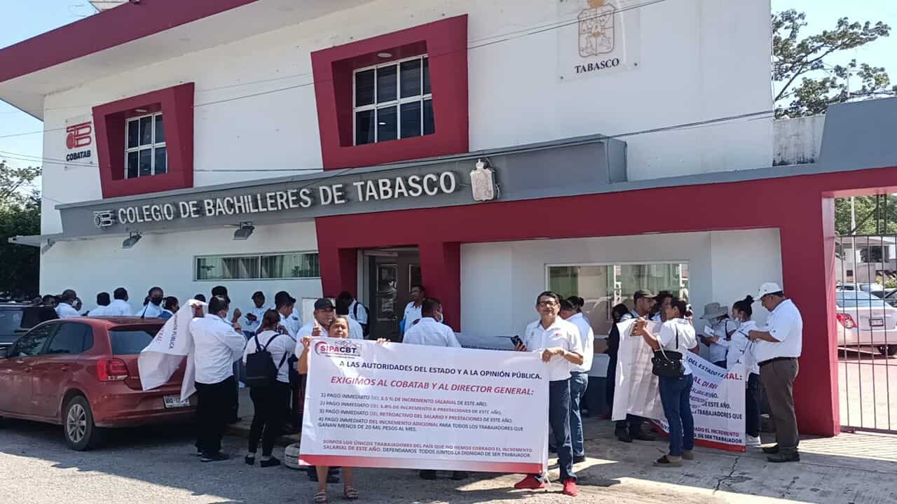 PODER Y CRÍTICA | REDACCIÓN | Debido a que no les pagaron aumento salarial autorizado este año integrantes del Sindicato Independiente del Colegio de Bachilleres de Tabasco (COBATAB), realizaron una marcha y cerraron la calle Gregorio Méndez Magaña frente a la Secretaría de Gobierno.