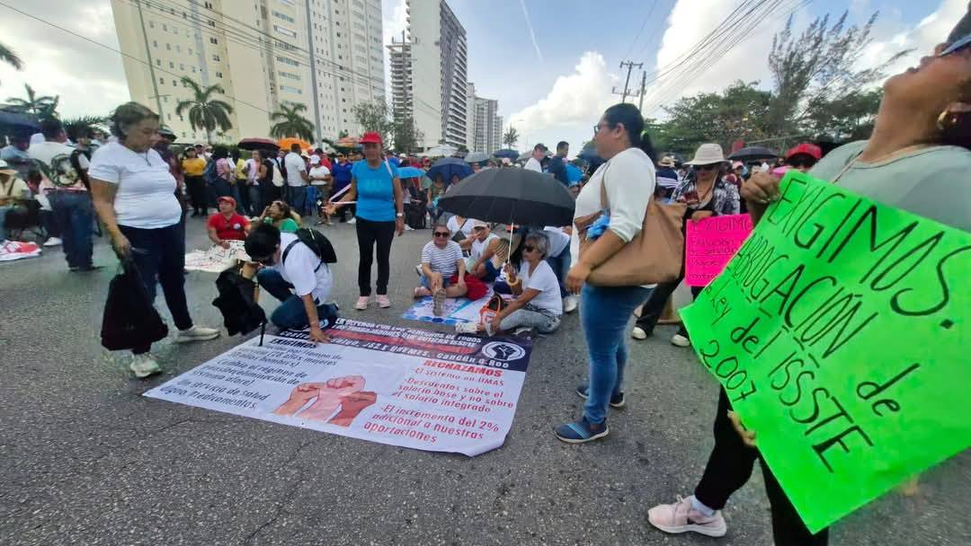 Los docentes partieron a las nueve de la mañana de las oficinas de la Secretaría de Educación de Quintana Roo (SEQ), ubicadas en la Bonampak con Uxmal, para de allí colocarse sobre el arroyo vehicular, portando diversas lonas en las que exigen la abrogación de la Ley del ISSSTE de 2007, así como varias de sus exigencias.