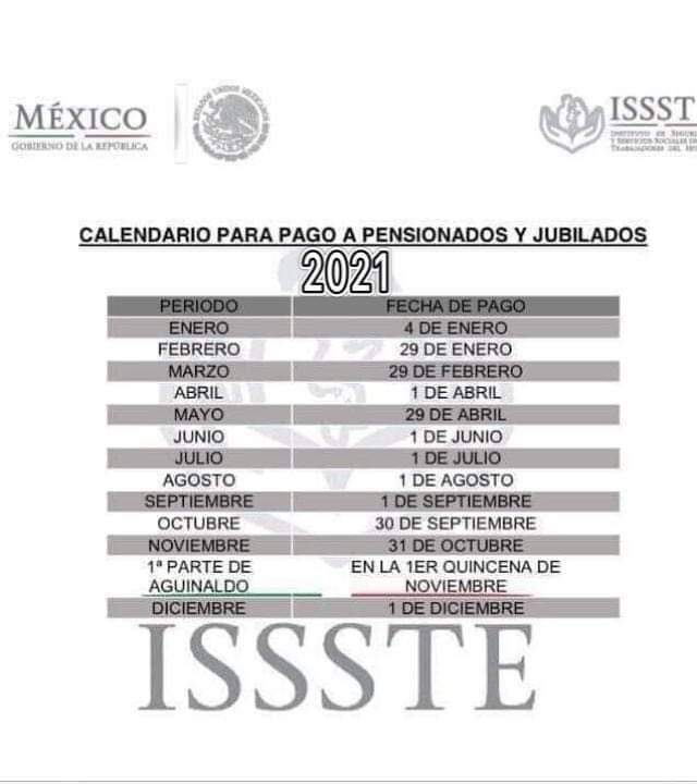 Detallaron que el pago debió realizarse el pasado 30 de diciembre, de acuerdo al Calendario para pagos a Pensionados y Jubilados 2020 que emite anualmente el ISSSTE.