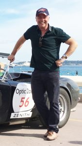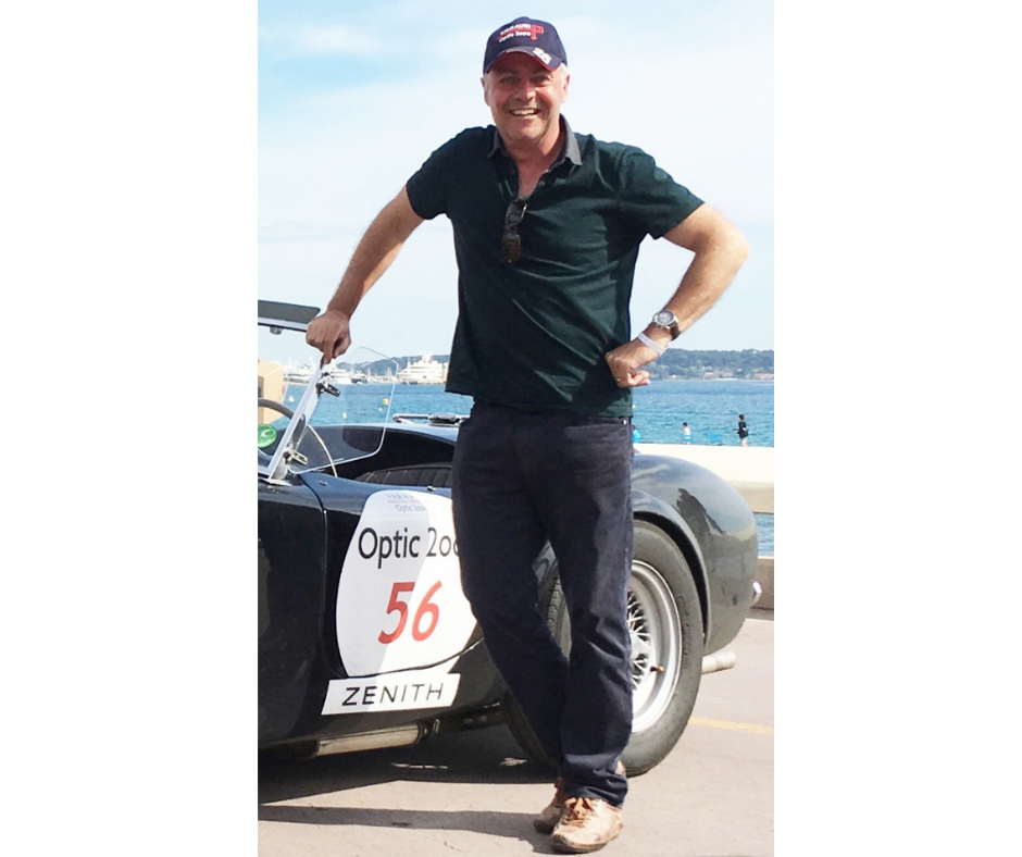 Su pasión se extiende por todos los ámbitos y es de gran alcance, pero con una debilidad particular por el primer Shelby Cobra angloamericano, después de haber tomado su propio automóvil en el exigente evento Tour Auto en Francia.