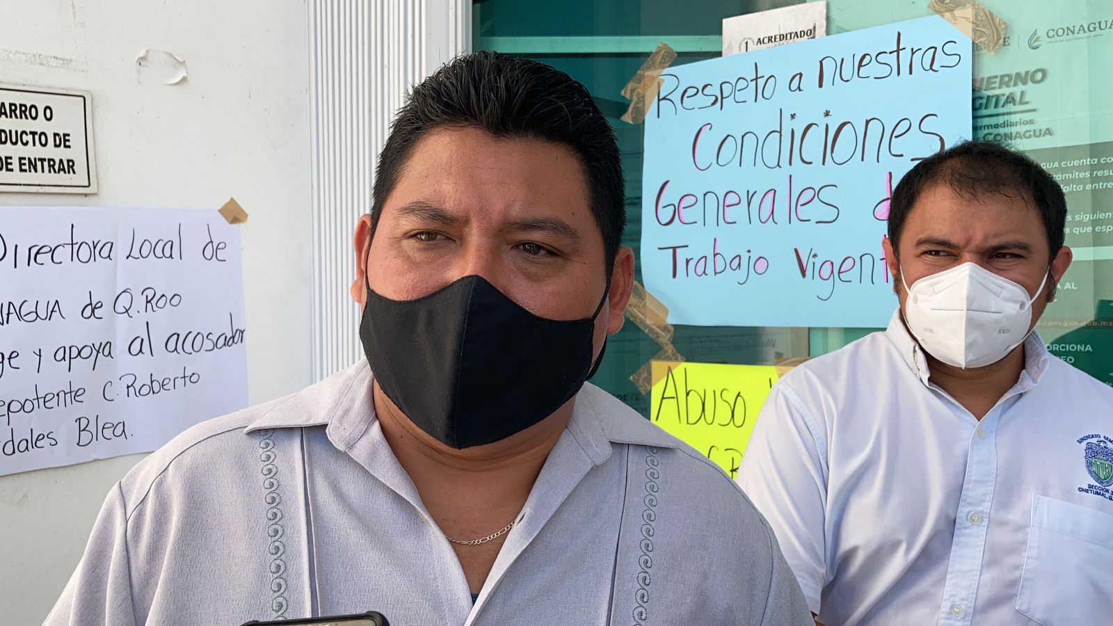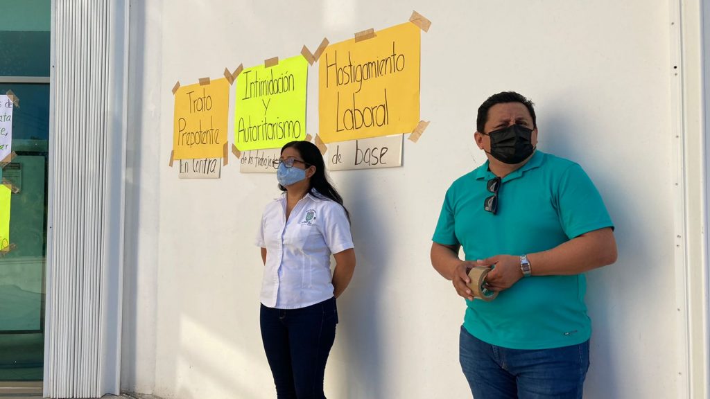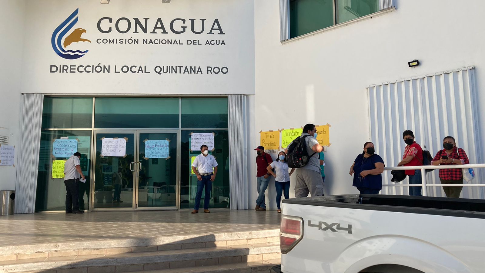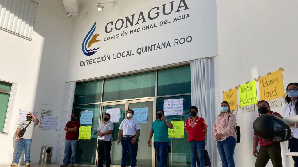 Chetumal, Q. Roo, lunes 04 de Octubre de 2021, poderycrítica.- Trabajadores sindicalizados de la delegación de la Comisión Nacional del Agua, CONAGUA, en esta ciudad, iniciaron un plantón indefinido en protesta por malos tratos que atribuyen a uno de los funcionarios de esa dependencia Federal.