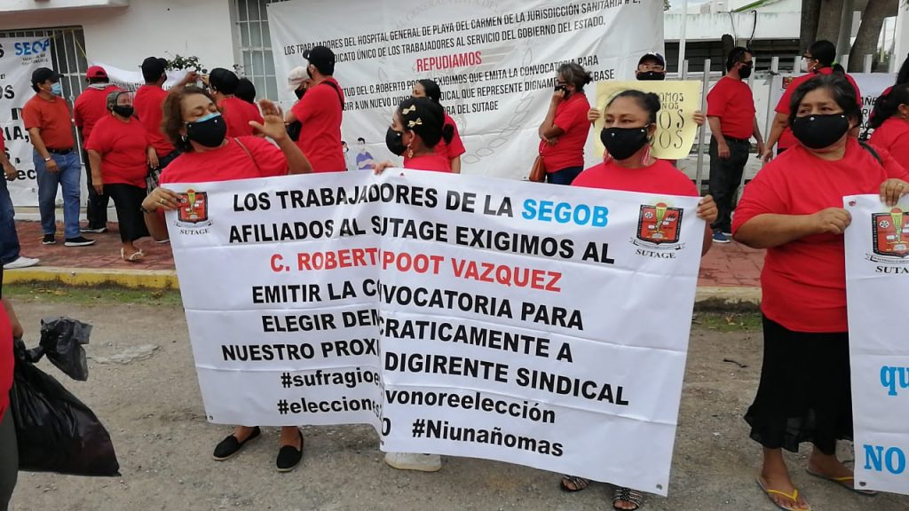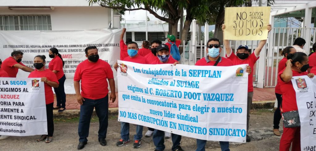 En el caso del SUTAGE, aseguró que el periodo de la dirigencia anterior que encabezó Roberto Poot Vázquez, concluyó el pasado 24 de julio; Sin embargo, no ha querido dejar este cargo, con la excusa de que no existen las condiciones adecuadas por la pandemia de Covid-19 para convocar a nuevas elecciones.