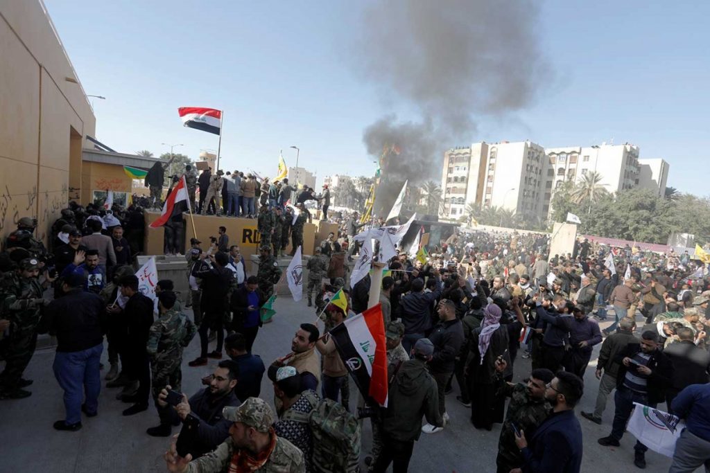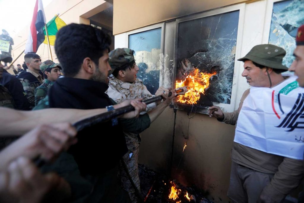 Los partidarios de la milicia chiita lograron entrar por la fuerza al complejo de la embajada tras romper la puerta principal y prender fuego a un área de recepción, disparando gases lacrimógenos.