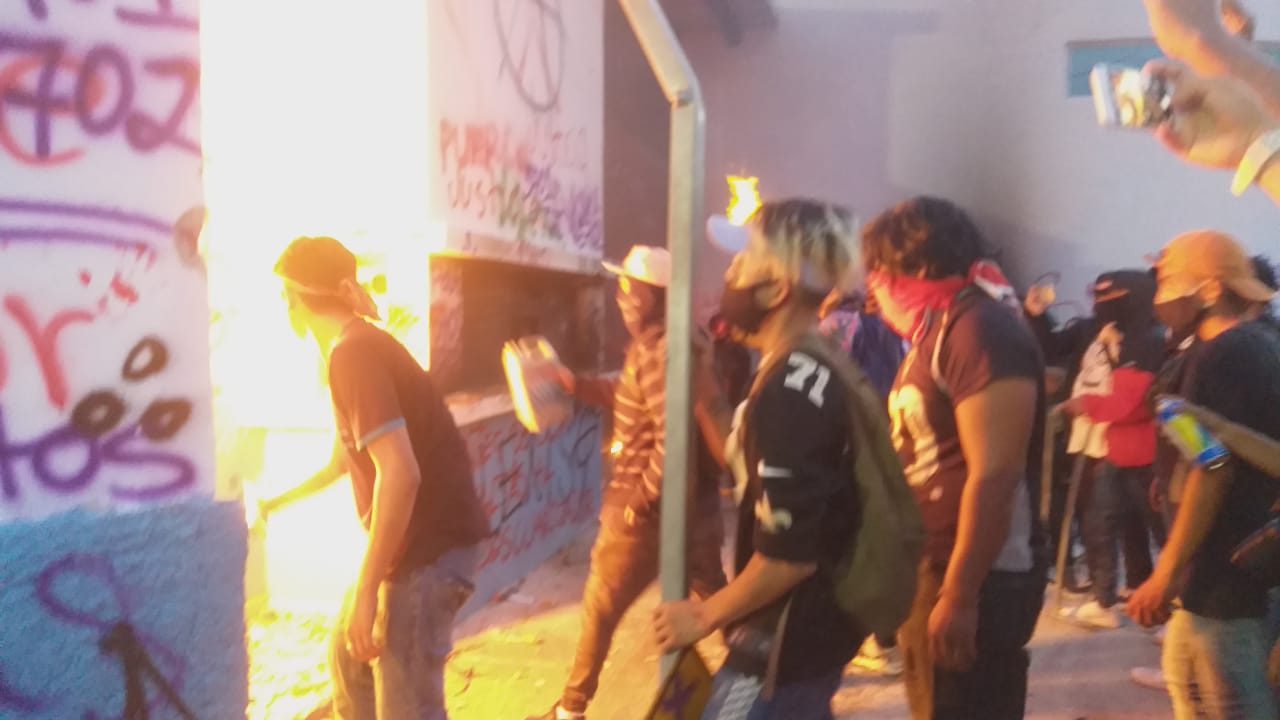 La jornada estaba a punto de alcanzar saldo blanco o mínimas afectaciones, cuando un grupo de jóvenes irrumpieron en las oficinas generales de la dirección de tránsito municipal para realizar destrozos y saqueos