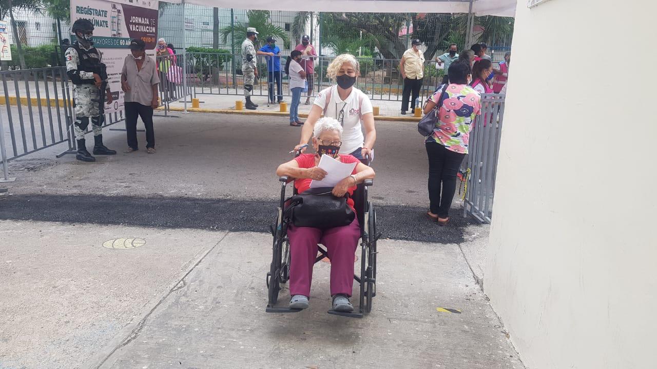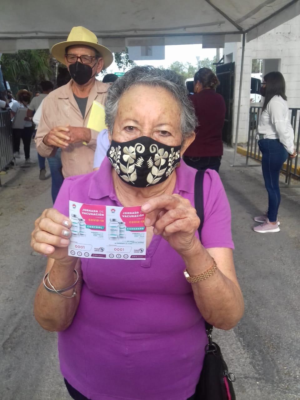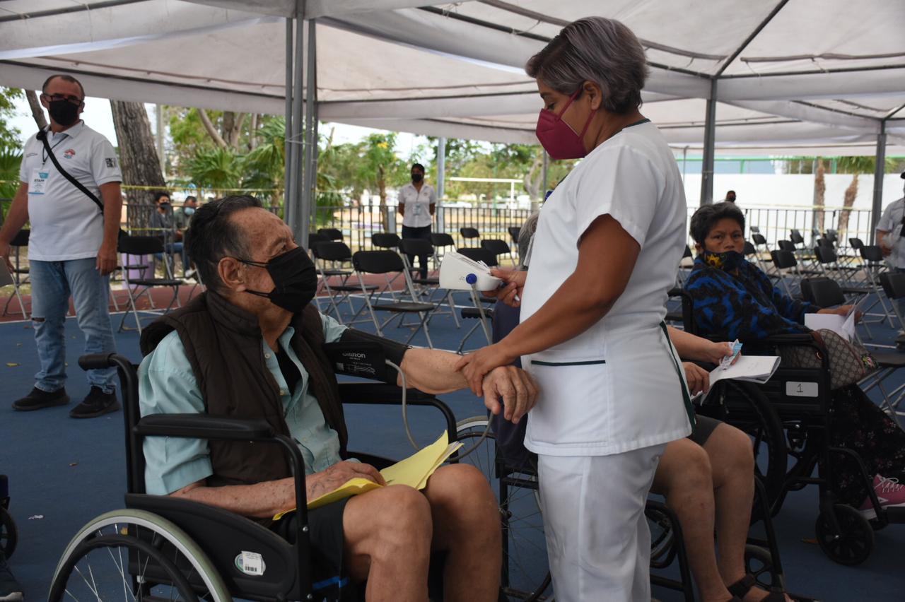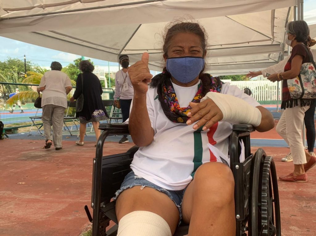 Alicia Alarcón Mujica fue la primera persona en ser vacunada, en este caso en el domo «Jacinto Canek».
