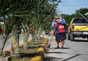 Emmanuel Zetina Cimé, subdirector de la dependencia en mención en la Zona Continental, explicó que los trabajos de desmalezamiento, barrido, recoja de basura vegetal y de desechos en las áreas de Punta Sam y Zona Urbana, que incluyen las avenidas Rancho Viejo, carretera intermunicipal, avenida costera, escuelas, y edificios gubernamentales continúan sin interrupción.