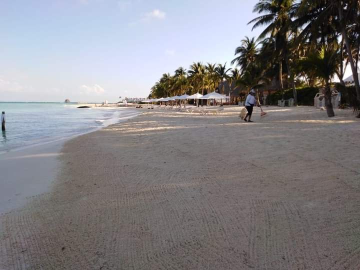Kerem Pinto Aguilar, directora de la dependencia en mención, explicó que, aunque Quintana Roo permanece en color amarillo del semáforo epidemiológico estatal, las acuadrillas de trabajadores a su cargo, realizan diariamente desde temprana hora rastrillado y colado de arena, manteniendo así, los estándares de calidad de estos balnearios.
