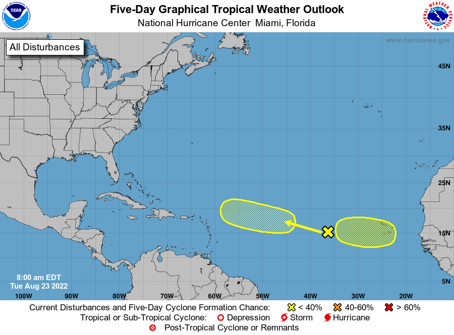 Poder y Crítica | Redacción | La COEPROC informa que, con base en el Centro Nacional de Huracanes de Miami, Florida, Estados Unidos y el Servicio Meteorológico Nacional, se vigila el océano Atlántico por la probabilidad de formación de un sistema ciclónico; además se prevé la formación de una zona de baja presión con 20% de probabilidad para desarrollo ciclónico a cinco días.