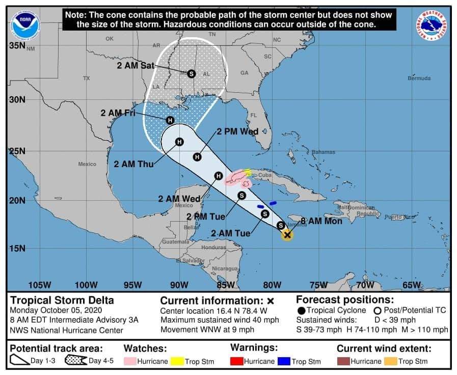 Isla Mujeres, Q. Roo, Lunes 05 de Octubre del 2020, poderycrítica.- Ante la formación de la Tormenta Tropical “Delta” en el mar caribe, ubicado a 1,050 kilómetros de las costas de Quintana Roo, la dirección de Protección Civil del gobierno de Isla Mujeres que encabeza Juan Carrillo Soberanis, mantiene la vigilancia del trayecto del fenómeno hidrometeorológico.