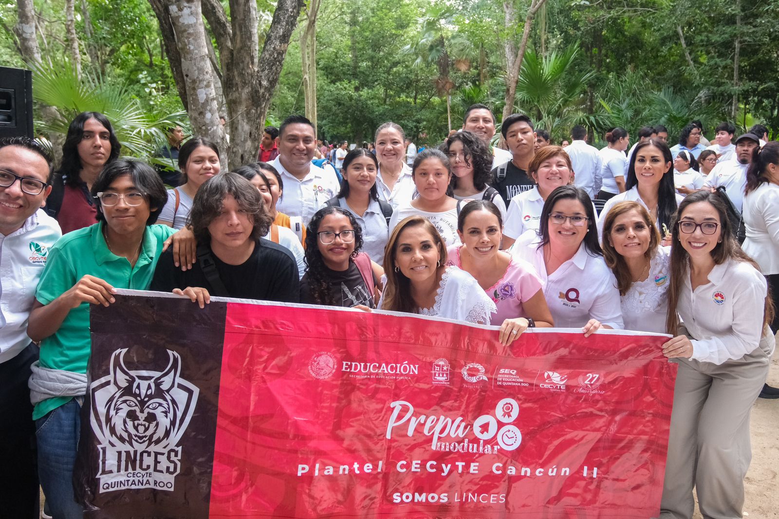 Presentes en la ceremonia, la gobernadora de Quintana Roo invitó a todos y todas las alumnas de bachilleres, del CONALEP, del Colegio Veracruzano, de la sociedad civil, a recorrer el parque, visitarlo, conocerlo, vivirlo, disfrutarlo, pero también cuidar y proteger a la fauna, la flora de la que es la primera área natural protegida de todo el estado, para que la prosperidad compartida también se refleje en estos espacios de convivencia social.