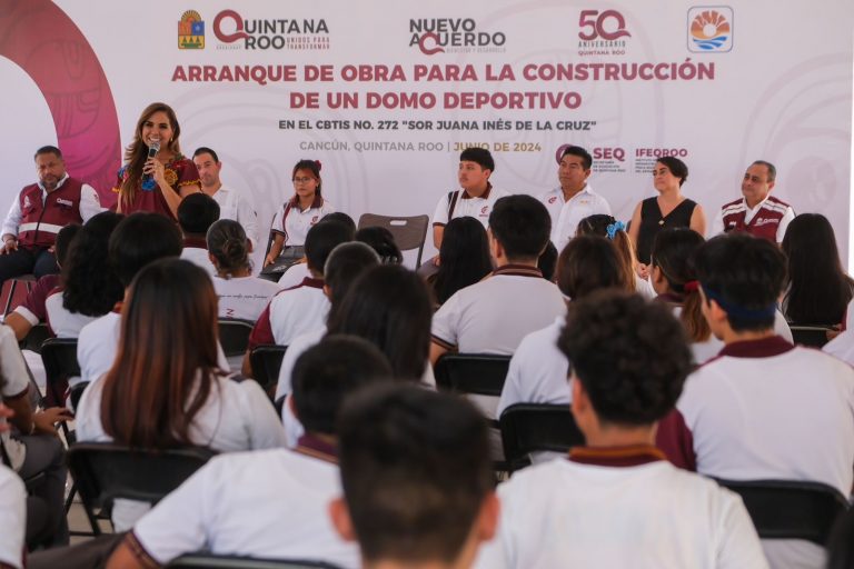 PODER Y CRÍTICA | REDACCIÓN | En menos de tres meses, la gobernadora Mara Lezama Espinosa cumple su compromiso de gestionar los recursos para la construcción de un domo deportivo de 850 metros cuadrados e inversión de 5.6 millones de pesos en el Centro de Bachillerato Tecnológico Industrial y de Servicios (CBTIS) 272 “Sor Juana Inés de la Cruz” de Cancún.