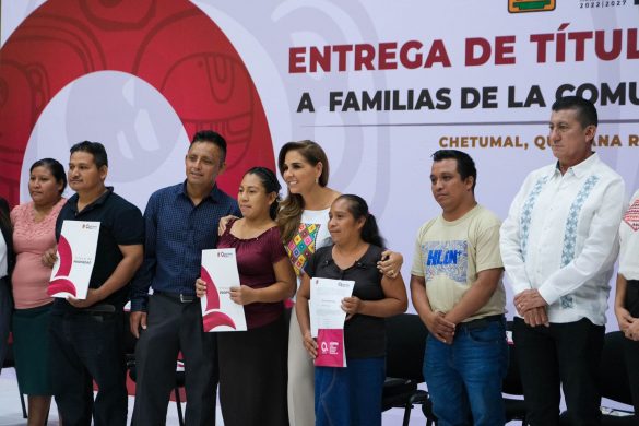 PODER Y CRÍTICA | REDACCIÓN | La gobernadora Mara Lezama Espinosa entregó hoy los primeros títulos de propiedad a habitantes de Maya Balam, municipio de Bacalar, que tuvieron que esperar más de 30 años para recibir atención jurídica sobre sus lotes y parcelas.