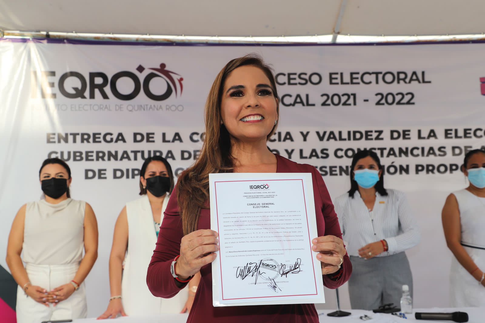 PODER Y CRÍTICA | REDACCIÓN | Estamos haciendo historia porque tenemos a la primera mujer gobernadora, a la primera ciudadana emanada del pueblo, afirmó Mara Lezama al recibir del Instituto Electoral de Quintana Roo (IEQROO) la constancia que la acredita como gobernadora electa.