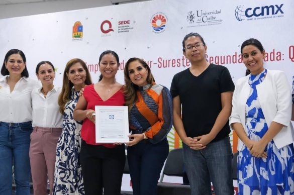 Mara Lezama estuvo en la segunda parada de la Ruta Emprendedora: CREO MX Sur-Sureste que se llevó a cabo en la Universidad del Caribe con la participación de más de 200 asistentes, en donde entregó títulos de registro de marca ante el IMPI.