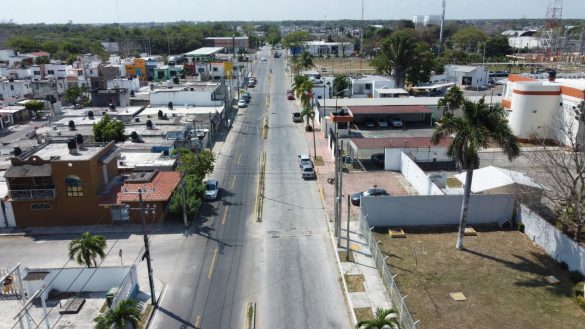 Se trabajó sobre la avenida Aarón Merino entre calle Ecab y Retorno 8, y la calle 12 entre Av. Enrique Barocio Barrios y Av. José Marrufo, en donde se colocó pavimentación de concreto asfáltico en tres mil 679 metros cuadrados, 260 metros cuadrados de banquetas de concreto y en mil 82 metros lineales de señalización horizontal.