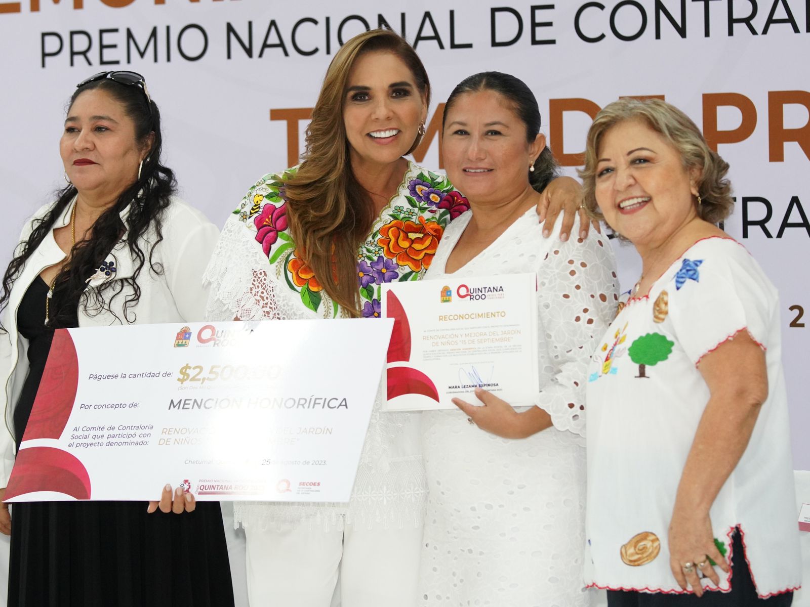 PODER Y CRÍTICA | REDACCIÓN | En reconocimiento al trabajo que realizan de manera organizada en el seguimiento, supervisión y vigilancia social, la gobernadora Mara Lezama Espinosa entregó premios a los ganadores del XV Premio Nacional de Contraloría Social 2023, etapa Quintana Roo y, además, tomó protesta de los integrantes de nuevos Comités de Contraloría Social.
