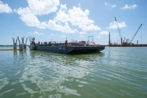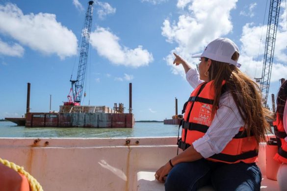 PODER Y CRÍTICA | REDACCIÓN | La gobernadora Mara Lezama Espinosa recorrió hoy, acompañada de autoridades del Gobierno de México, las obras en construcción del Puente Nichupté, en Cancún.