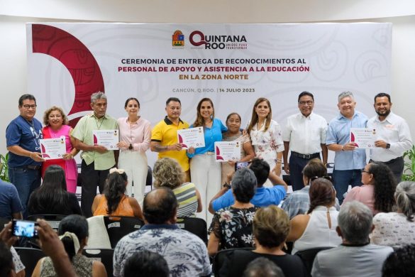 PODER Y CRÍTICA | REDACCIÓN | La gobernadora Mara Lezama valoró y reconoció la labor que todos los días realiza el personal de apoyo y asistencia a la educación, pieza fundamental que hace posible que se mueva la Secretaría de Educación, al entregar estímulos y recompensas por 35, 30 y 25 años de servicios.