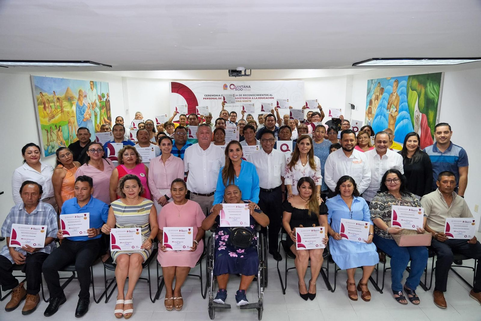 PODER Y CRÍTICA | REDACCIÓN | La gobernadora Mara Lezama valoró y reconoció la labor que todos los días realiza el personal de apoyo y asistencia a la educación, pieza fundamental que hace posible que se mueva la Secretaría de Educación, al entregar estímulos y recompensas por 35, 30 y 25 años de servicios.
