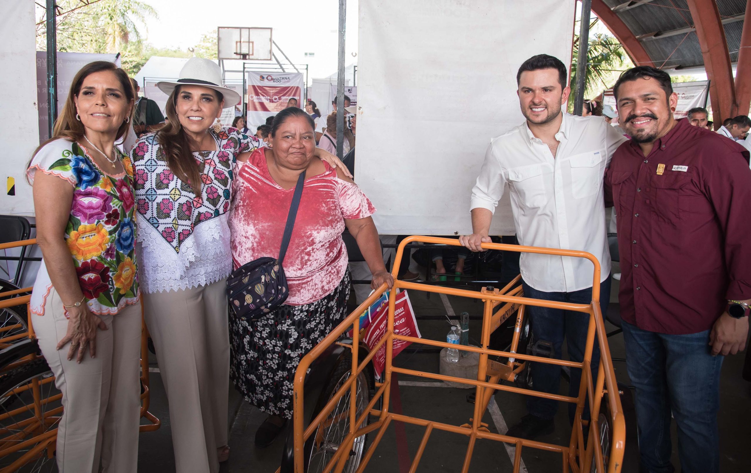 Trabajando a ras de piso y de manera cercana a la ciudadanía, durante la Caravana del Bienestar realizada en el Domo Deportivo Hábitat III, el Secretario de Bienestar, Pablo Bustamante, acompañó a la Gobernadora Mara Lezama, en la primera Caravana del Bienestar de este 2025, donde entregaron 260 apoyos, como son: sillas de rueda, triciclos, bastones, bicicletas, glaucómetros, baumanómetros, tinacos, láminas, entre otros.