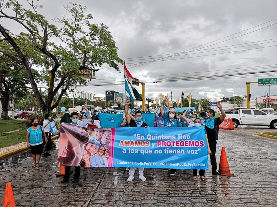 En el recorrido mostraron pañuelos azules y en una de sus lonas decía que Quintana Roo es ProFamilia.