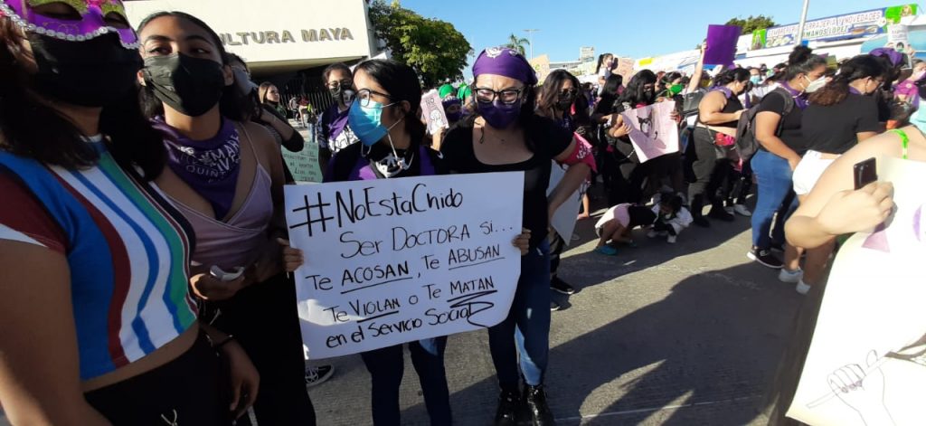 En Quintana Roo; desde 2017 tenemos una Alerta por Violencia de Género activada; posteriormente extendida; y las acciones siguen siendo insuficientes, seguimos enfrentando una realidad donde la violencia permea a todas las mujeres y niñas por igual; seguimos sin poder desenvolvernos libremente, sin estar seguras ni siquiera en casa. Nos hemos organizado y no hay ninguna fuerza que nos pare, ningún piso político que sea tan poderoso como para olvidar que a todas nos matan por igual, que en nuestro día a día derribamos barreras, techos que fueron creados para silenciarnos, minimizarnos y oprimirnos.