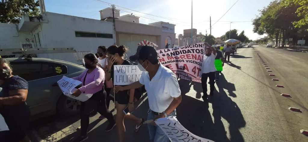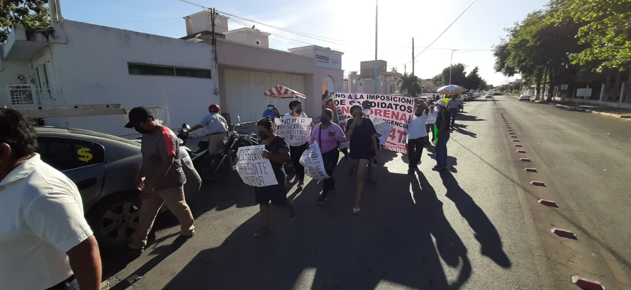 Chetumal, Q. Roo, Martes  16 de Marzo de 2021, poderycrítica.-  Militantes del Partido Movimiento de Regeneración Nacional (MORENA) en el municipio de Othón P. Blanco, realizaron una marcha en protesta por la imposición de candidatos en el actual proceso electoral.