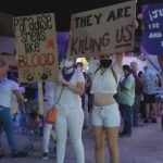 Durante la caminata gritaban consignas en contra de las autoridades, además que llevaron pancartas en inglés y en español haciendo referencia al maltrato y la violencia contra las mujeres.