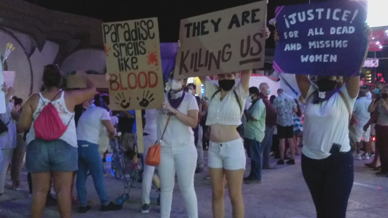 También exigieron también justicia para Bianca Alejandrina Lorenzana Alvarado “Alexis”, joven cuyo cuerpo fue encontrado descuartizado el 8 de noviembre en Cancún, así como para todas aquellas mujeres víctimas de violencia y feminicidio en el estado.