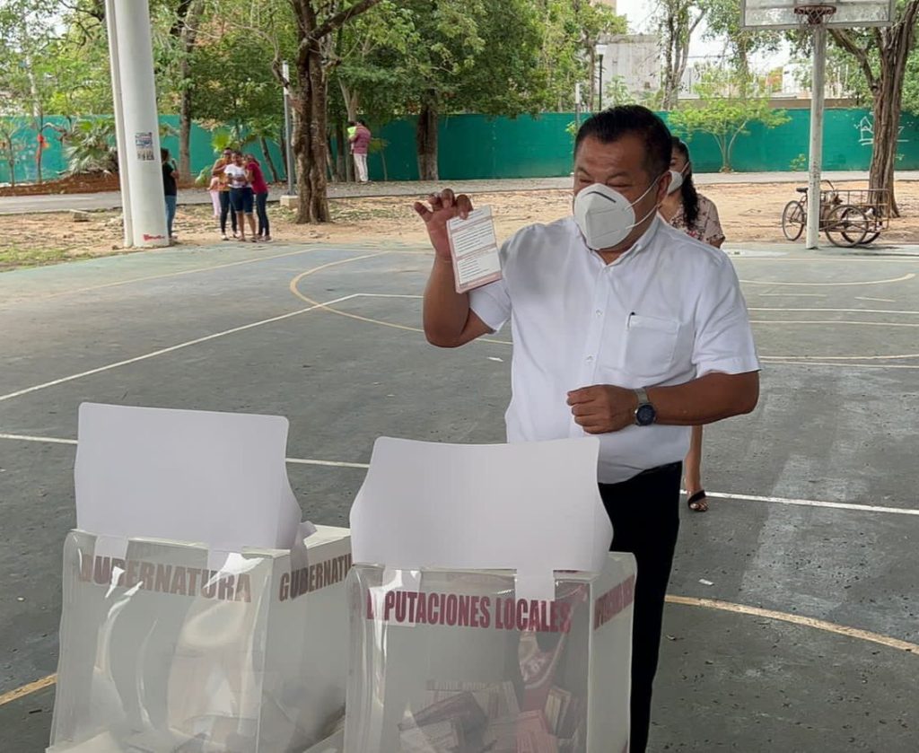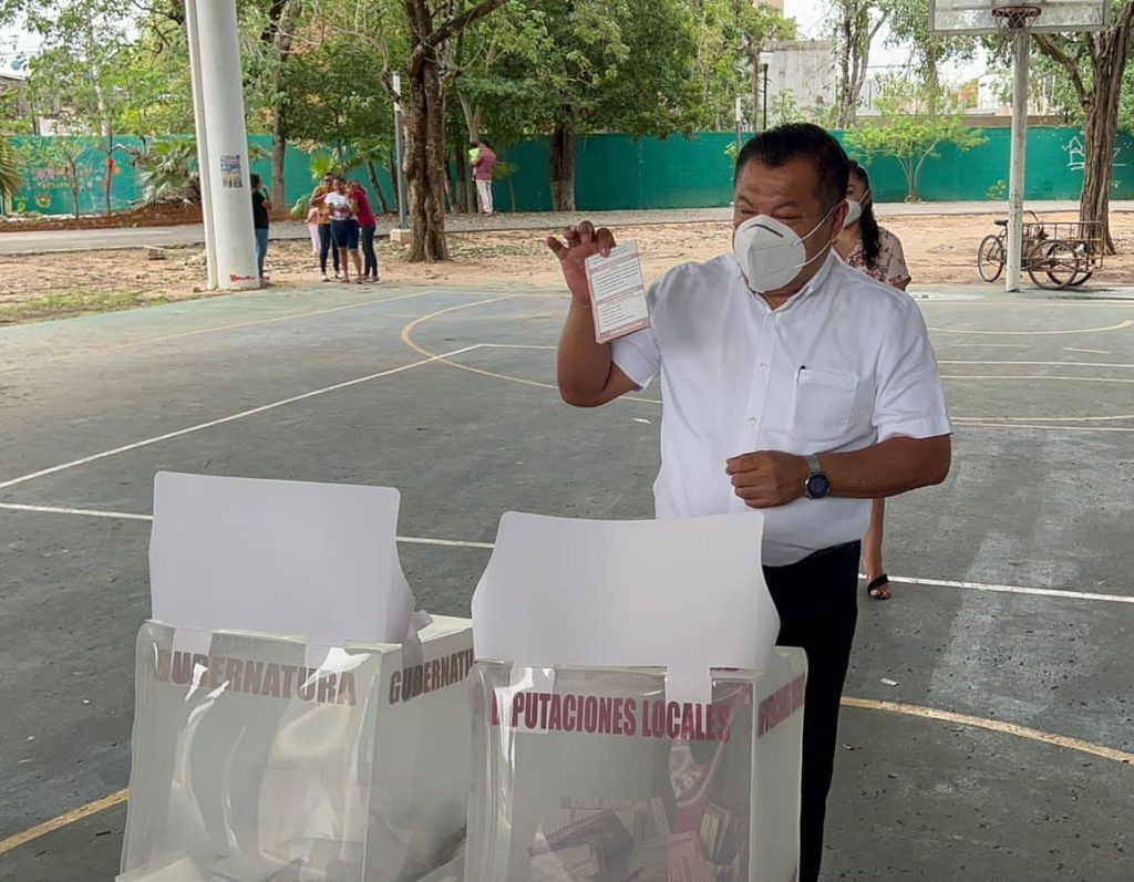 PODER Y CRÍTICA | REDACCIÓN | El presidente municipal de Tulum, Marciano Dzul Caamal acompañado de su esposa la Sra. Ileana Canul del Dzul, acudió a la casilla que le corresponde a emitir su voto en estas #Elecciones2022.