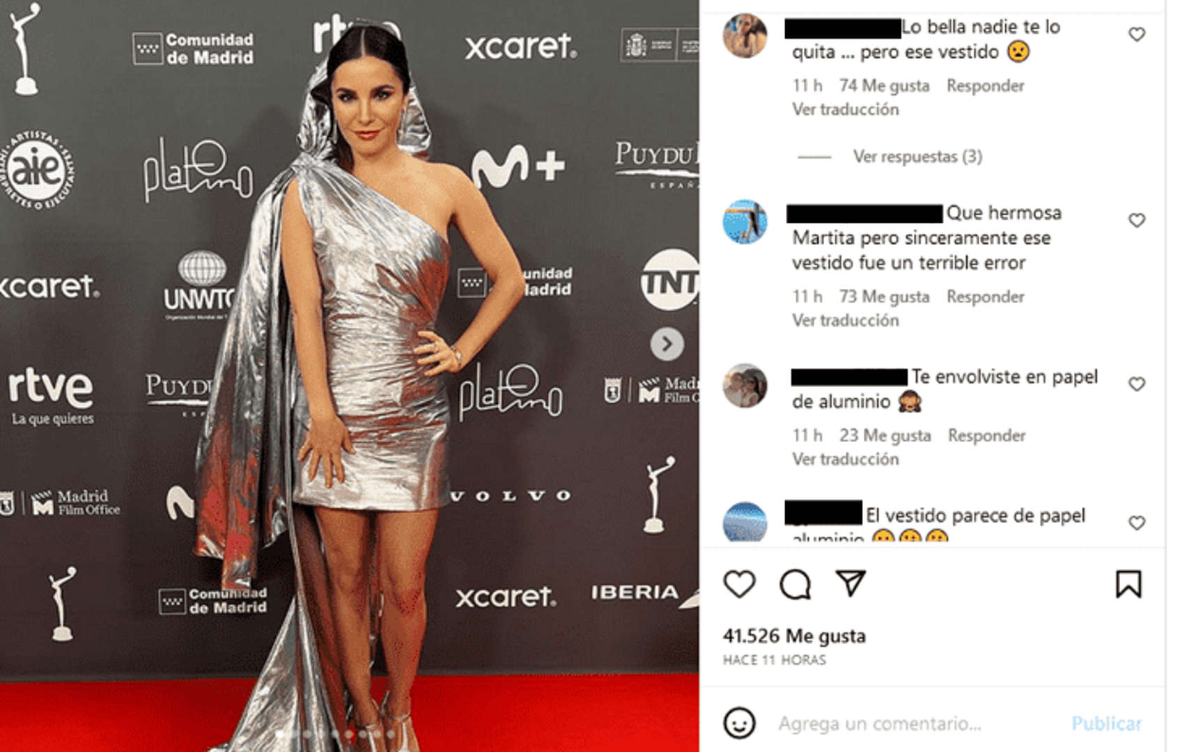 “Mi mamá buscando el papel aluminio para mi torta”, “Ahora sí no le atinó, para la tela para las mantas que dan para el frío’, “Con todo el dinero que tiene y eligió el peor vestido”, “El vestido parece de papel aluminio” o “Cuando se te resbala el papel aluminio”, fueron algunos de los comentarios en redes.