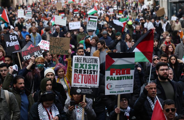 PODER Y CRÍTICA | REDACCIÓN | Más de 300 mil personas marcharon este sábado por el centro de Londres para exigir a Israel un alto a sus bombardeos contra Gaza.