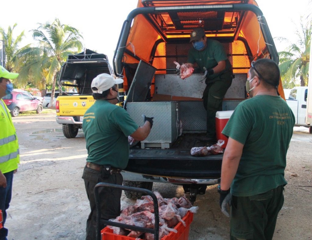 La SEDARPE a cargo de Luis Torres Llanes, contactó a productores ganaderos locales para adquirir carne de res, la cual están siendo transportadas vía aérea y terrestre para apoyar a las familias afectadas.