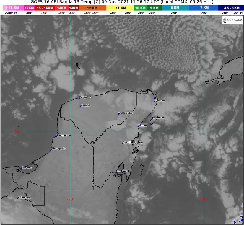 Acotó que las estaciones convencionales y automáticas del Servicio Meteorológico Nacional, reportaron que el termómetro descendió 14.2 grados en el municipio de Felipe Carrillo Puerto, la madrugada de este martes.
