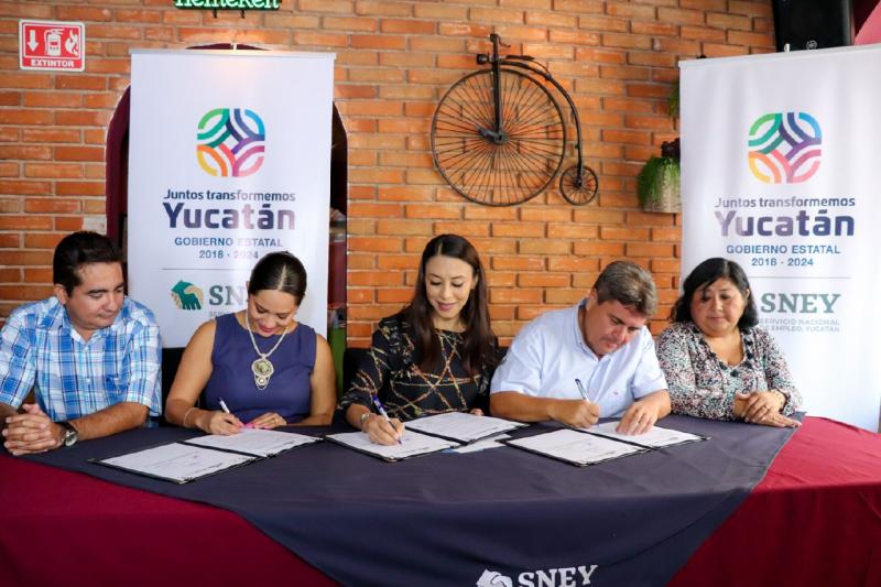 Yucatán, 11 octubre; poderycritica.-A fin de implementar acciones de vinculación que beneficien a la juventud del estado, el Servicio Nacional de Empleo, Yucatán (SNEY) firmó este día un convenio de colaboración con la Universidad Tecnológica (UT) del Mayab y la Cámara Nacional de la Industria de Restaurantes y Alimentos Condimentados (Canirac).